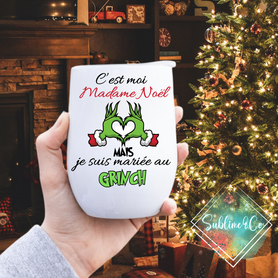 Tasse Isotherme 12oz « C’est moi Madame Noël, mais je suis mariée au Grinch »