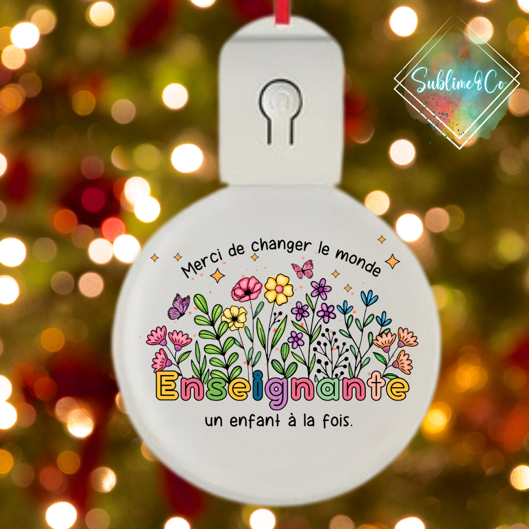 Célébrez les fêtes avec un ornement de Noël LED personnalisé, portant le message « Merci de changer le monde, un enfant à la fois ». Un hommage sincère aux enseignants qui, chaque jour, font une différence dans la vie des élèves.