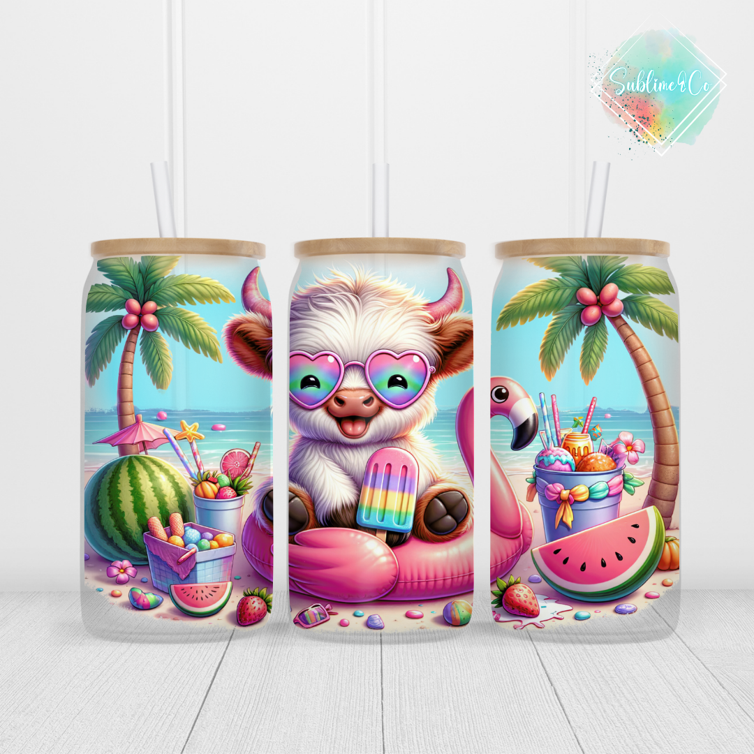 Apportez une touche de vacances à vos boissons avec notre verre givré de 16 oz, orné d’une adorable petite vache Highland profitant du soleil à la plage ! Ce design ludique et rafraîchissant fera sourire à chaque gorgée.